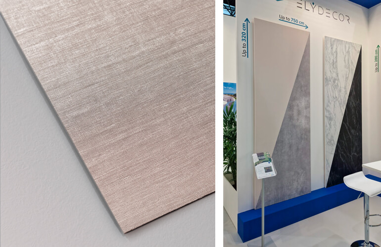 These new products expand the range of products for interiors, proposing to the market not only grp laminates with smooth surfaces, but 3D textural products with great expressive potential. They are full height, 260x800 cm in size, and therefore suitable for the entire wall from floor to ceiling. The panels are fully decorated, finished, and ready for use without requiring additional decorative papers, leading to effective savings in production steps and labor.
